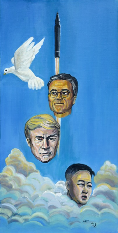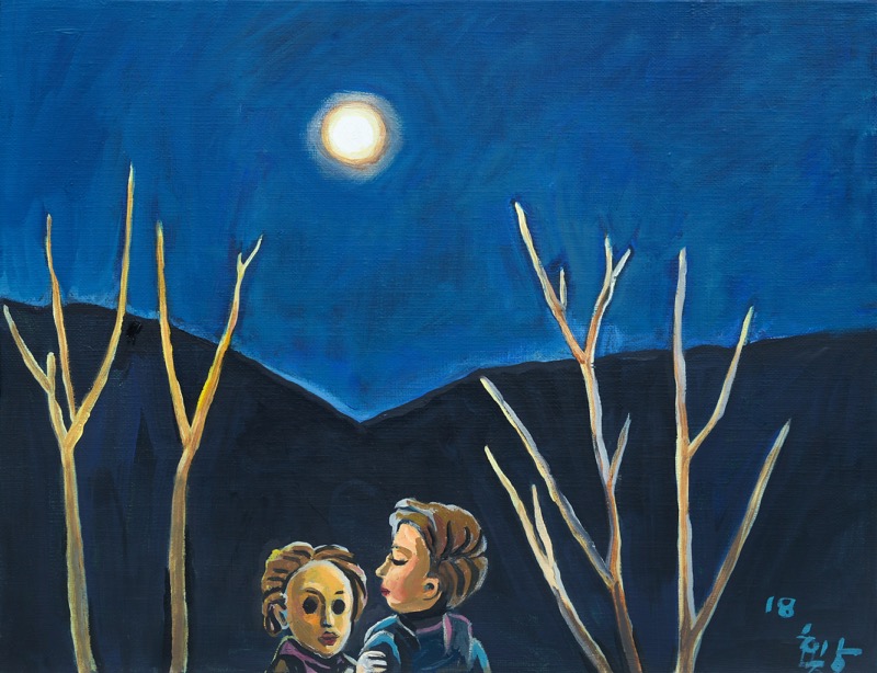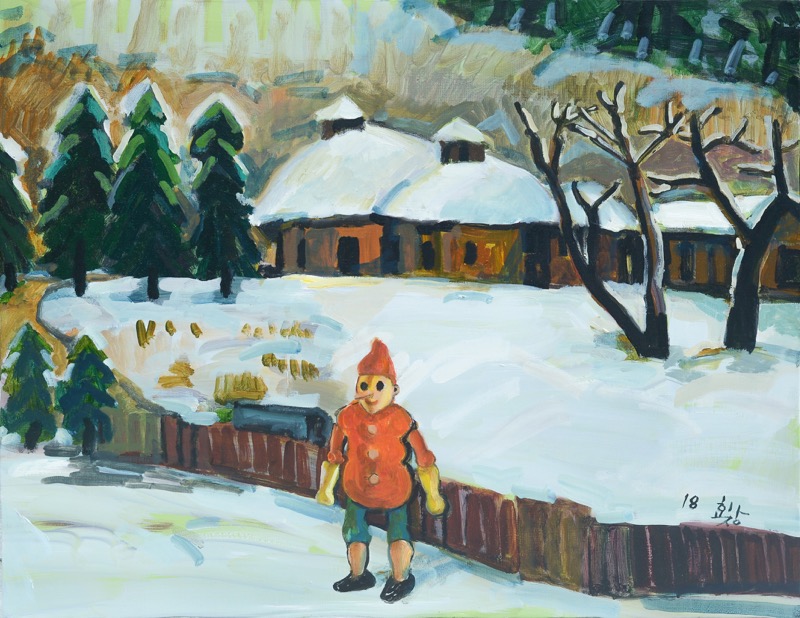 ● 그의 인형은 오늘도 우리에게 도발을 멈추지 않는다. 광주민주화운동의 진실이 여전히 감추어져 호도되고 있는 곳에서도, 촛불민심의 불길이 타오르려 할 때의 터질 듯한 긴장 속에서도 그의 인형그림은 어김없이 등장했다. 뻔한 것 같은 인형이 보여주는 미세한 표정 변화에서 읽게 되는 감정들이기에 그 효과는 훨씬 강하다. 사람처럼 표정을 바꿀 수 없는 인형, 사람처럼 움직일 수 없는 인형에 미세한 표정과 행동을 입혔다. 사람 대신 인형을 그린다는 것은, 은유, 환유법 같은 문학적 수사법이 꼭 필요한 이유와도 다르지 않다. 직접적인 서술보다 비유를 통한 수사법이 훨씬 큰 효과를 내기 마련이니까 말이다.